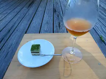 茶師はきたの茶園の若主人、北野秀一さん(45)。レストランのシェフのような正装で、栽培法や品種の特徴などを話しながら格調高い作法で3種のお茶を淹れてくれる。茶器は400年以上の伝統を誇る地元の肥前吉田焼を使用。有機栽培の煎茶は渋みと甘味が程よく入り交じってコクのある味わい。冷たいやぶきた和紅茶など2種はそれぞれに菓子が付き、さわやかに喉元を過ぎていく。眼下には嬉野温泉街が広がり、まるで天空の茶室。異次元の世界だ。