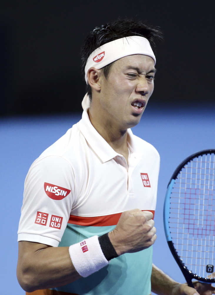 ポイントを奪い、ガッツポーズの錦織(AP)