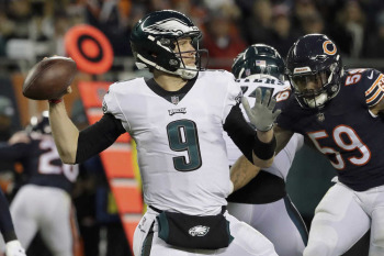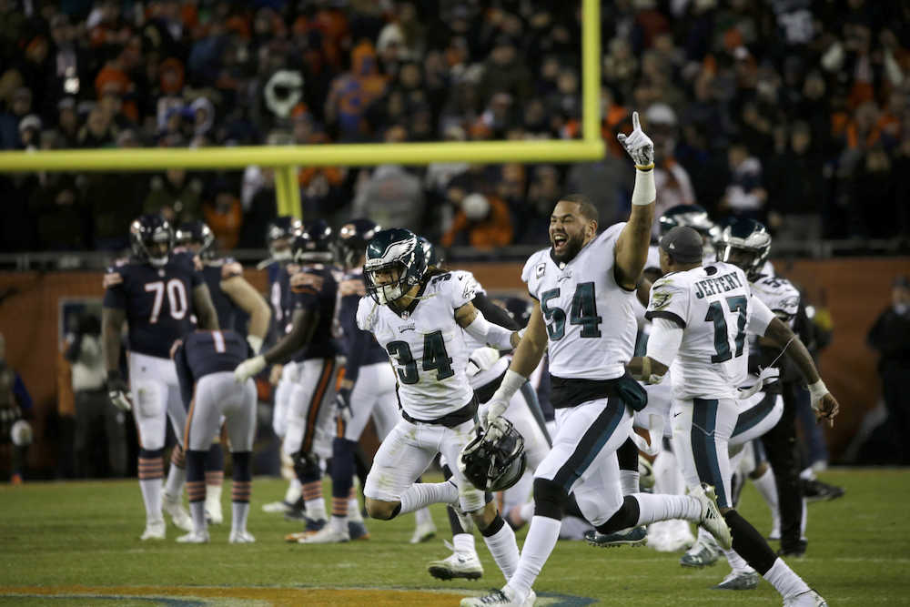 NFLプレーオフのナショナル・カンファレンス(NFC)1回戦が6日にシカゴで行われ、昨季のスーパーボウルを制したイーグルス(9勝7敗)が16―15(前半3―6)で地元のベアーズ(12勝4敗)を振り切ってNFC準決勝に進出。スーパーボウル連覇に望みをつないだ。