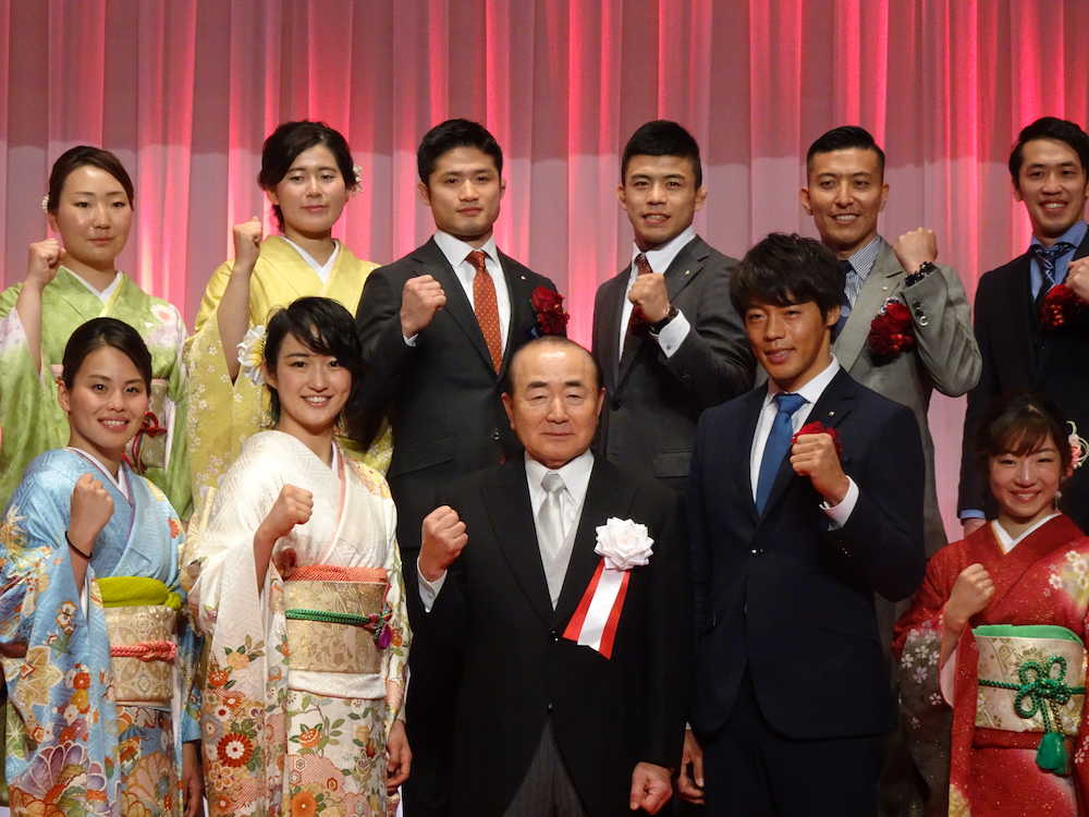 ミキハウスの新春祝賀会が11日に大阪市内であり、東京五輪出場を狙う所属選手らが出席した。柔道男子66キロ級の丸山城志郎(25)は2019年も阿部キラー継続を誓った。