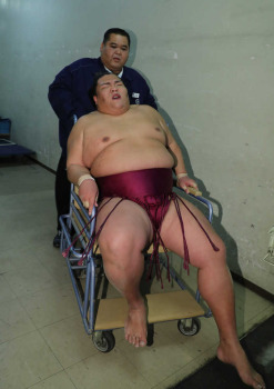 御嶽海 左脚痛め病院直行 検査後松葉づえ姿「大丈夫です」も…