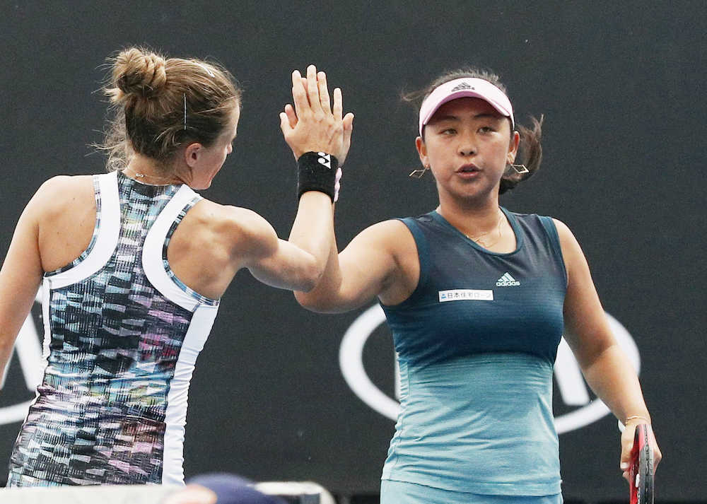 今季から新たにコンビを組み、前哨戦のシドニー国際で準優勝した穂積、ロソルスカ組はミスが目立ったが、シードペアの意地を見せた。試合後にパートナーと抱き合った穂積は「最後まで手が震えていた。何とか乗り切れて良かった」と息をついた。