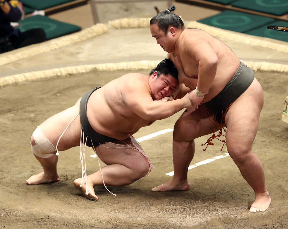 宇良 海龍に突き落とされ2勝2敗「圧力負け」