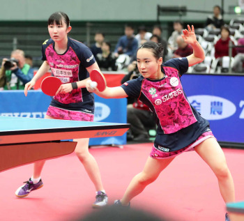 卓球全日本選手権第6日 女子ダブルス決勝 早田・伊藤組3-1芝田・大藤組 ( 2019年1月19日 大阪市・丸善インテックアリーナ大坂 )