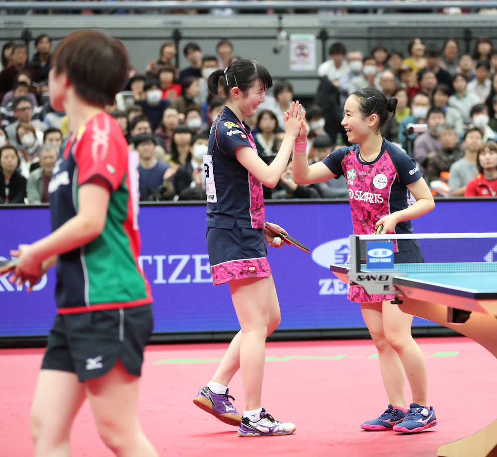 テクニシャン伊藤がつないで、強打の左利き早田が仕留める。結成わずか2年弱で世界ツアー6勝。昨年12月のグランドファイナルも制した。左右のコンビは初タッグの17年世界選手権銅メダルから上昇曲線を描く。
