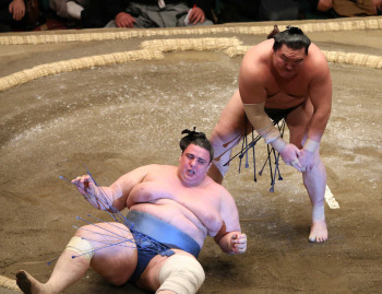 両大関● 高安4敗、豪栄5敗…ともに突き落としに屈す