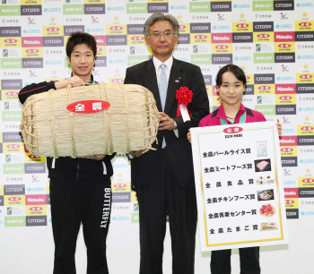 Vの水谷&美誠にうれしいご褒美 全農から豪華な副賞