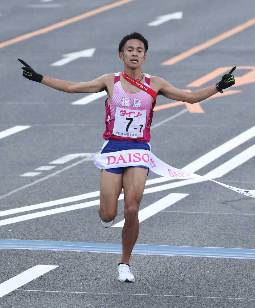 胃腸炎のため、当日にメンバーを外れた1年前の屈辱。箱根駅伝の4区区間賞で、東洋大を往路Vに導いた自信も背中を押した。7・5キロでトップに立ち、残る5・5キロはウイニングラン。過去2位が3度の福島に、そして東北に初めての優勝をもたらした。