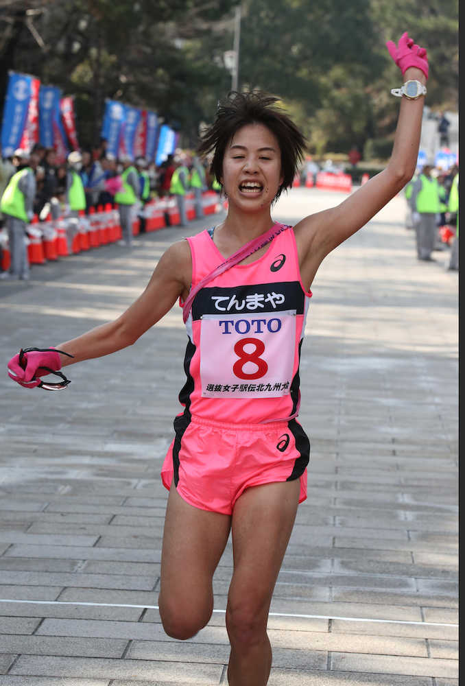 天満屋は1区で西脇が区間1位。その後も上位をキープし、最終5区の小原も区間賞の快走で後続を突き放した。神村学園は2区で1年生のバイレ・シンシアが18分7秒の区間新記録を出すなど、2位に2分24秒差をつけて圧勝した。