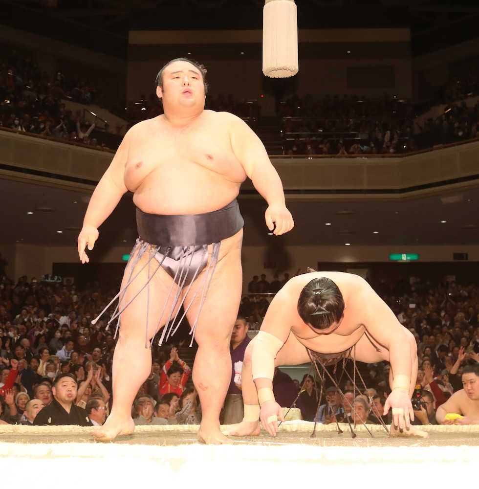 横綱の終盤の失速で混戦ムードとなった優勝争い。「3敗まである気がする。玉鷲はあした(14日目)からプレッシャーになる」と予想した。また、白鵬を倒したことで一歩前進した貴景勝の大関獲りについては「(それは)審判部」とコメントを控えた。土俵下で見守った錦戸審判部副部長(元関脇・水戸泉)は「(大関昇進は)終わってみないと分からない。一つ一つの積み重ね」と話した。