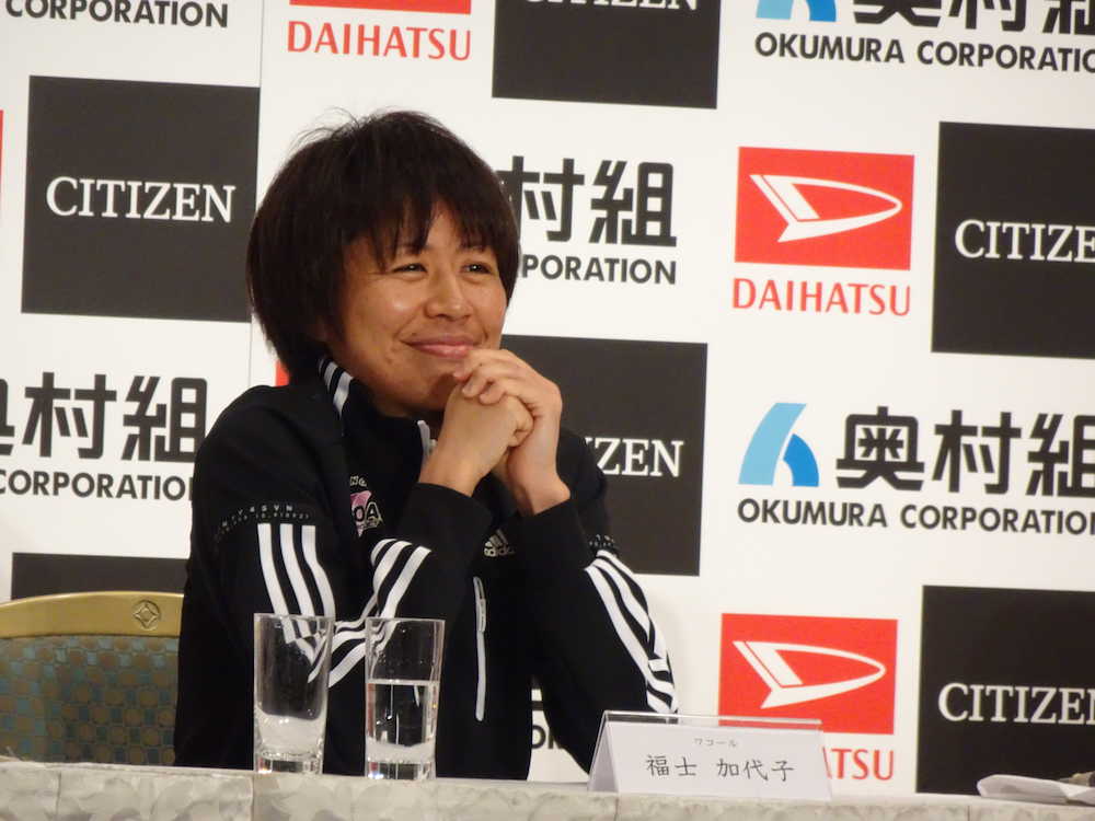 27日号砲の大阪国際女子マラソンの記者会見が25日に大阪市内であり、招待選手が出席した。16年リオデジャネイロ五輪(14位)以来2年半ぶりのマラソンに臨む福士加代子(36=ワコール)はリラックスムードの中に、力強い言葉をちりばめた。
