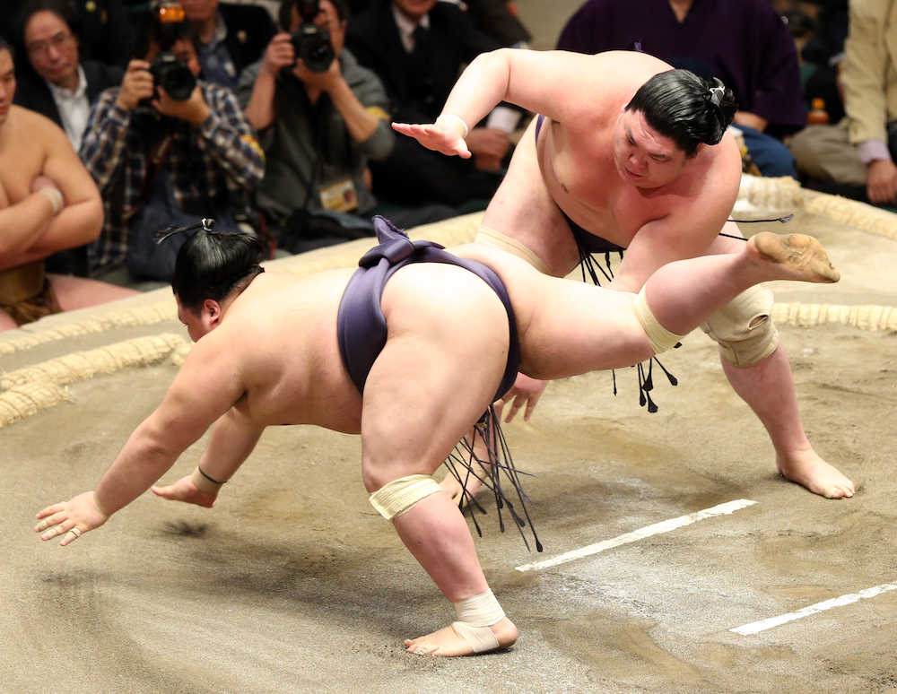 7勝目を挙げてから4連敗と足踏み。「勝ちたいという気持ちがありすぎて空回りしたところがあった。ホッとしてます」。中大相撲部の先輩で兄弟子の豪風が場所中に引退。その豪風から「おまえはこんなもんじゃない」とハッパを掛けられ、ようやく期待に応えた。「まだ2日ある。2桁を目指して頑張る」とすぐに気持ちを切り替えた。