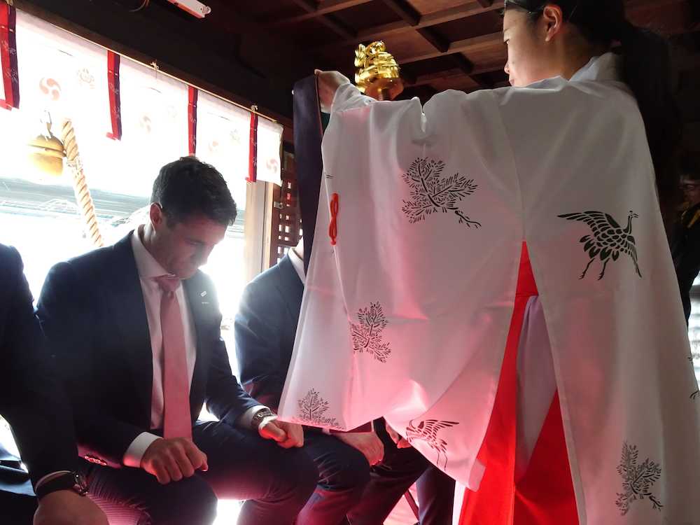 ラグビーのトップリーグを15季ぶりに制した神戸製鋼が26日、神戸市の南宮宇佐八幡神社で優勝のお礼参りをした。SOダン・カーター(36=ニュージーランド)も出席。玉串を捧げるなどの初体験をした世界のスーパースターは、「日本の文化の新たなことを学べた。重要な体験ができて本当に良かった。こういう経験を含めて日本に住むのが好きです」と、引き締まった表情で語った。
