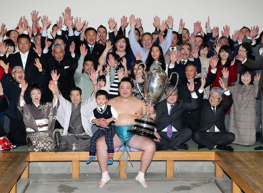 玉鷲 初V&次男誕生“ダブルの喜び”から一夜明け 睡眠2時間半でもニッコリ