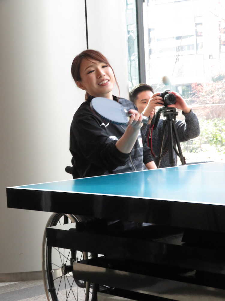 デモンストレーションでは茶田の見事なネット際の攻撃に健常者も四苦八苦。「(健常者が)ボールに届かないと『それそれ』と思いました。私のイメージ通りの台で、ネットまでの遠さを感じてもらえればと思います」と出来栄えに納得の表情だった。
