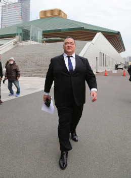 稽古場の壁に掛けられている木札は「横綱」「稀勢の里」と書かれていたものが外され、「親方」「荒磯」になった。それでも、この日は稽古用の白まわしをつけて登場。「新しいですよ。タイミングよくね」と説明したように、それは春場所(3月10日初日、エディオンアリーナ大阪)に向けた稽古で使用するはずのものだった。