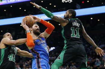 セルティクスは地元ボストンでサンダーに134―129(前半66―58)で勝って34勝19敗。30得点と11アシストを記録したカイリー・アービング(26)を含め、出場9人中8人が2ケタ得点を稼いでチームは4連勝を飾った。 サンダーの連勝は7で止まって35勝19敗。球宴先発のポール・ジョージ(28)が37得点、球宴リザーブのラッセル・ウエストブルック(30)が22得点、12リバウンド、16アシストで今季19回目のトリプルダブル(通算123回目)を達成したがあと一歩およばなかった。