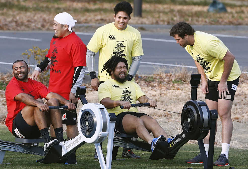 ラグビー日本代表候補合宿は東京都町田市で4日目を消化した。初日の体力測定でメンバー全員を4組に編成しており、この日はチーム別に赤、青、緑、黄の4色のTシャツを着用。ラン、バイク、ローイングの3種類のメニューを15分×3セットで進んだ距離を競った。誰がどのメニューを何回こなすかは各組の戦略に委ねられ、競争心があおられる仕組み。WTB山田(パナソニック)らの青組が1位となった。