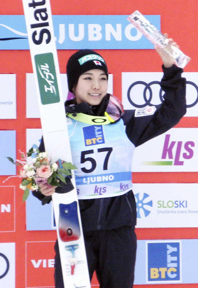 強風が吹き荒れ、試合が何度も中断する極めて難しいコンディション。条件に合わせてスタートゲートも上下した。1本目、17番から出た高梨は向かい風に乗り、K点を越える89・5メートルで首位に。ゲートが12番まで下がった2本目は「欲が出て凄く緊張して、踏み切りのタイミングが遅れた」とK点の手前に落ちたが、ルンビをわずかに得点で上回った。「今季W杯でやっと勝てて凄くハッピー。難しくて長い試合だったけど、集中して自分のジャンプだけ考えた」と振り返った高梨を、ルンビも「私のジャンプは2本とも良かったけど、今日のサラには勝てない」と称えた。