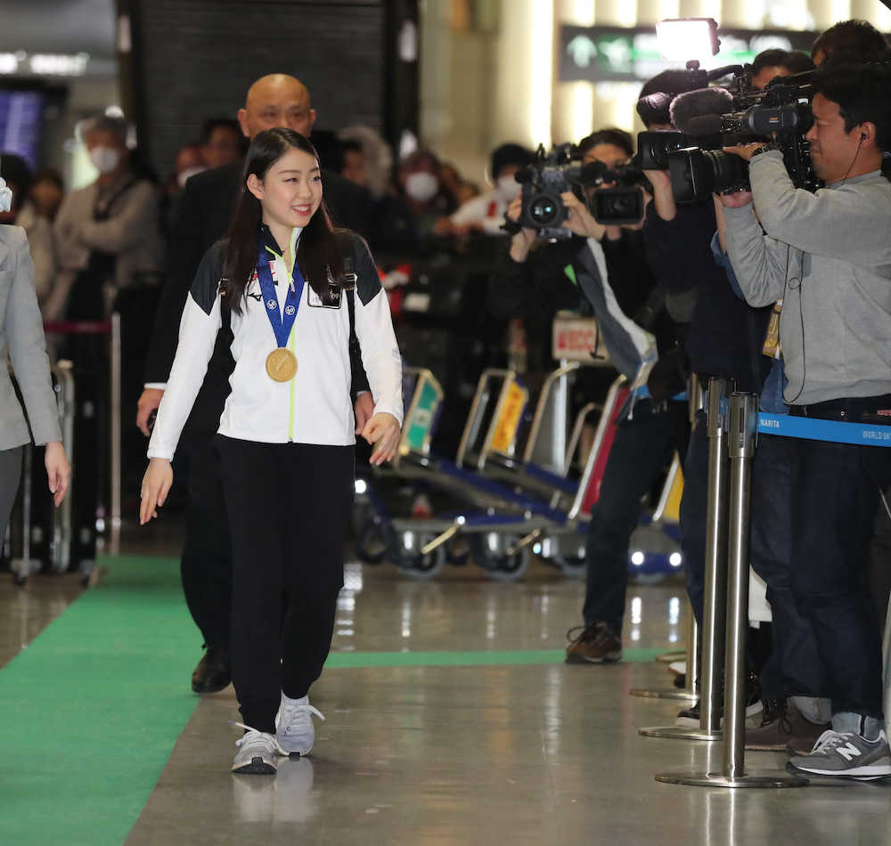 フィギュアスケート四大陸選手権で初優勝した紀平梨花(16=関大KFSC)が12日、成田空港着の航空機で米国から帰国した。