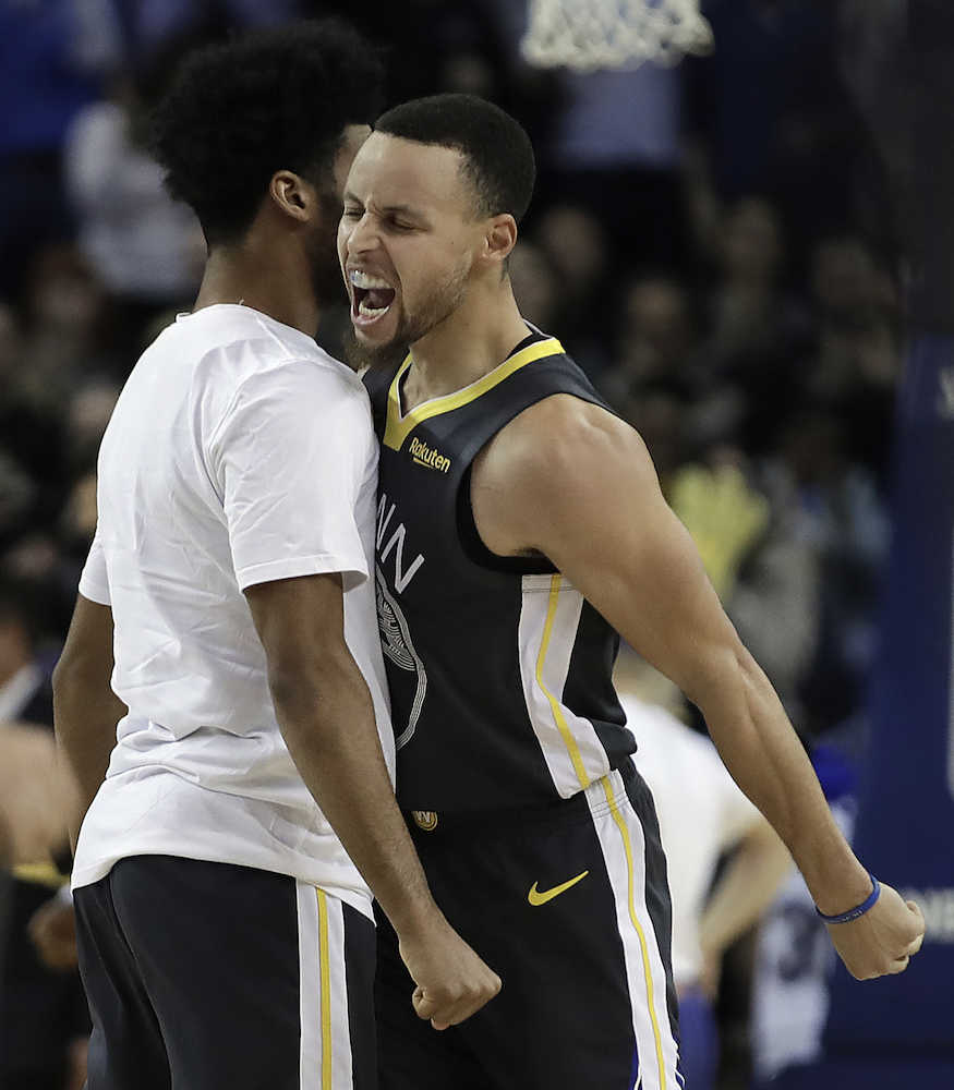 ウォリアーズは8日のサンズ戦で17点差、10日のヒート戦では19点差の劣勢をはねのけたが、これで3試合連続の逆転勝ち。ケビン・デュラント(30)が28得点、カリーは24得点、クレイ・トンプソン(29)は22得点をマークし、チームを支える主力3人が奮闘して地元ファンを歓喜させた。