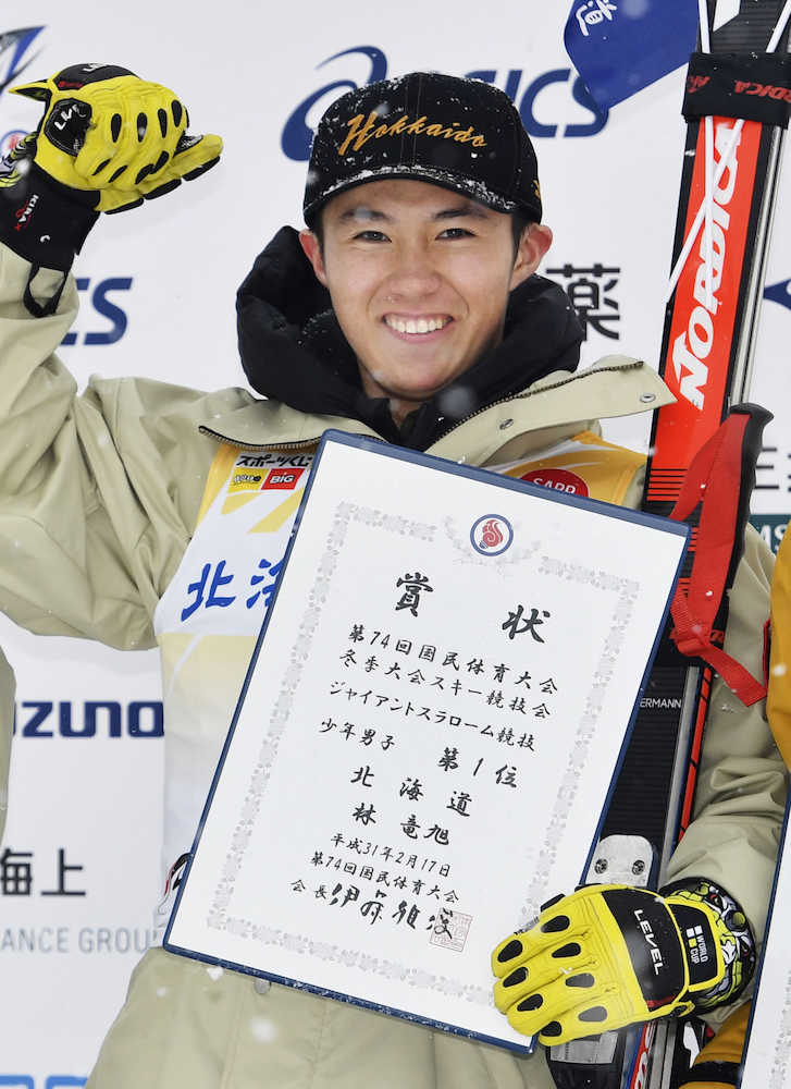 大回転で争うアルペン少年男子は林竜旭(北海道・双葉高)が1分10秒98で優勝した。