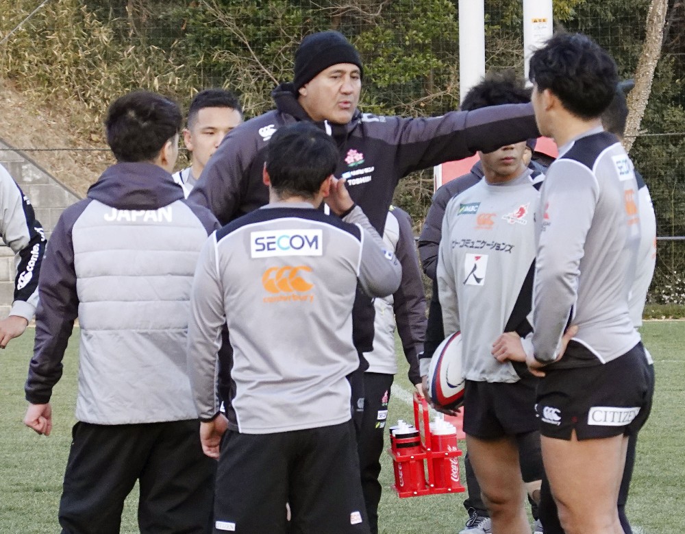 ずらしてくる相手の外側の膝に手を掛けて動きを止め、その後バインドして倒し切る。通常は両手と肩を同時に当てるのが定石で、選手は1回ごとに指揮官の助言を聞いて習得に取り組んだ。プロップ三上(東芝)は「抜けるところを外の膝をつかめれば止まる(と指導された)」と説明。昨年はディフェンスシステムそのものは機能していたものの、「ミスタックルしているところは飛び込みが多かった」とリーチ主将(東芝)。高度な技術を要する“マサカリタックル”を、開幕まで7カ月に迫ったW杯までに完成させる。