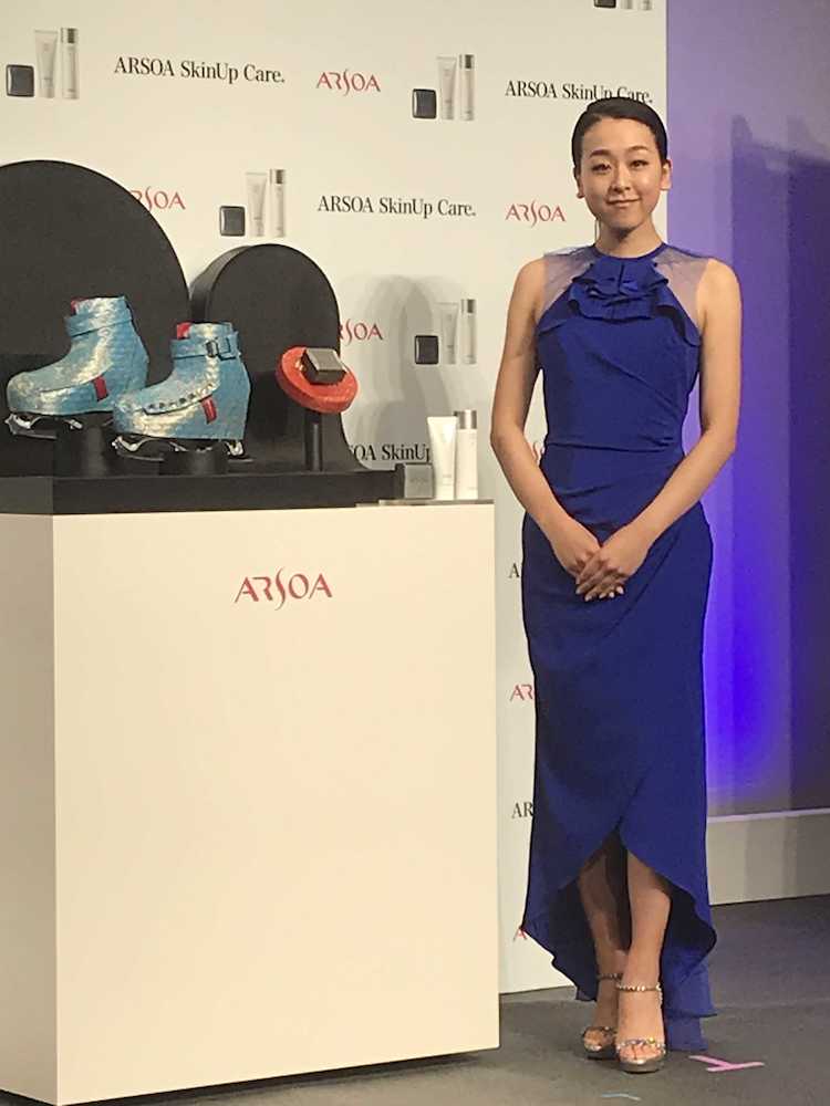 フィギュアスケート女子で10年バンクーバー五輪銀メダル、世界選手権を3度制した浅田真央さん(28)が20日、都内で「アルソアスキンケア」新製品発表会に参加した。