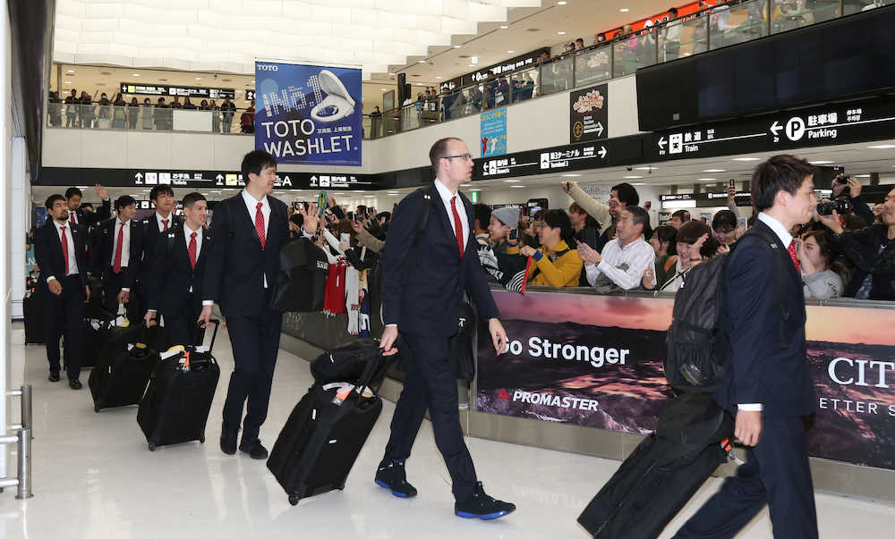 W杯出場を決め帰国したバスケットボール日本代表(撮影・荻原 浩人) Photo by スポニチ 男子バスケ 東京五輪に大きく前進!篠山主将「世界驚かす」 ギャラリーで見る この記事のフォト 2019年02月26日の画像一覧 もっと見る 2019年02月26日の画像をもっと見る