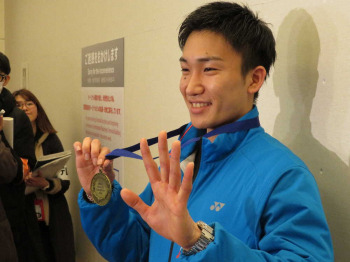 桃田が凱旋帰国「凄く達成感」 バドミントン全英オープン初優勝