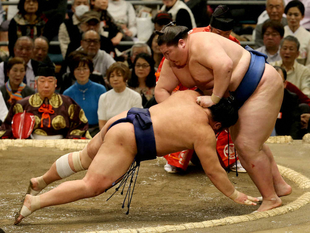 取組も栃煌山に土俵際まで押し込まれたが、軽快な“フットワーク”で回り込み逆転勝ち。「10点満点の3点の内容」と言いながらも、白星にホッとした表情だった。