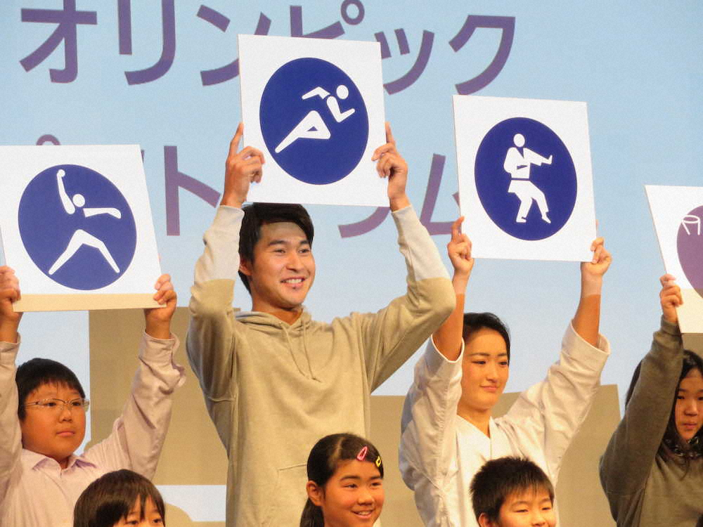 発表会には空手女子の清水希容(25=ミキハウス)と陸上男子短距離の飯塚翔太(27=ミズノ)が出席した。追加種目の空手は五輪で初めてのピクトグラムとあって、清水は「道着も帯もリアルに再現されている。格好いい」と感激した。清水はピクトグラムと同じ「手刀受け」のポーズも披露。「空手の良さをたくさんの人に知ってもらえるように良い演舞をしたい」と話した。飯塚も清水に負けじとスタートダッシュのシーンを再現。「飛び出し角度がいい。凄く速そうなロゴ」と絶賛した。
