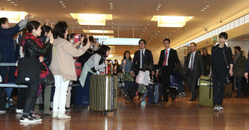 《“ジョニー・デップ級”警備》羽生が帰国した羽田空港の到着ロビーは一時、騒然となった。ゲートから羽生が姿を見せると、待ち構えたとみられる100人以上のファンや報道陣30人ほどが殺到。羽田空港にVIPが来日した際は特別動線を敷き、多くの警備員が配置されるが、この日も同様。過去にはジョニー・デップらがそうだったように、今回も羽生は空港職員に導かれながら立ち入り禁止区域に入っていった。