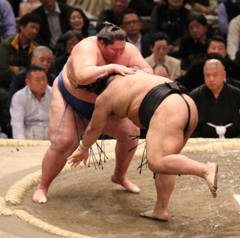 大相撲春場所10日目は19日、大阪・エディオンアリーナ大阪で行われ、白鵬は先場所、初めて負けた玉鷲を突き落としで下し10連勝。無敗街道を突き進んでいる。11日目は貴景勝と対戦。鶴竜は大関獲りを狙う貴景勝に引き落としで敗れた。貴景勝は初めて鶴竜に勝利した。