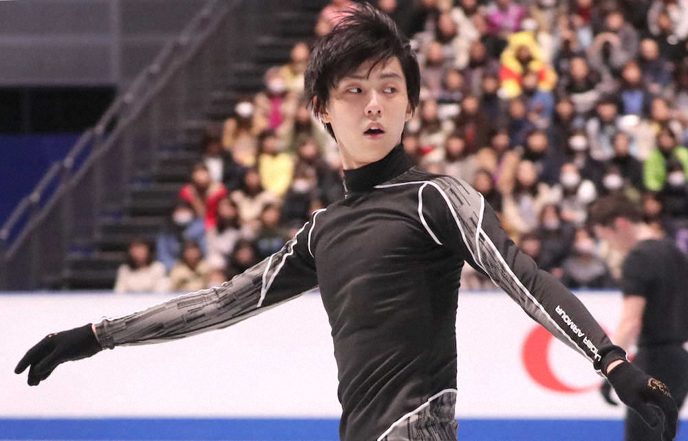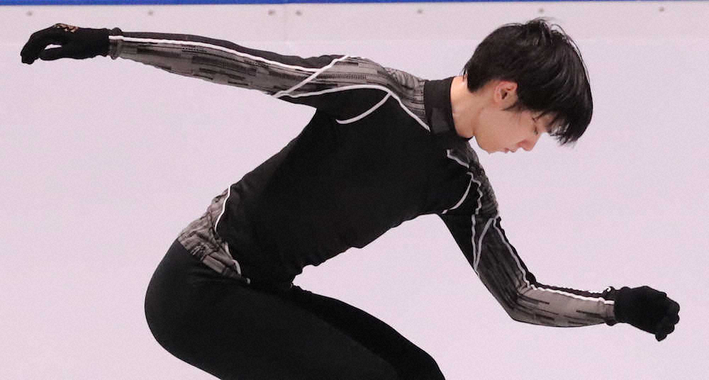 <世界フィギュア男子練習>SPの曲かけ練習を行う羽生結弦(撮影・長久保 豊)