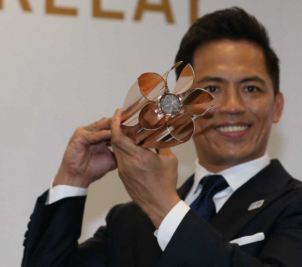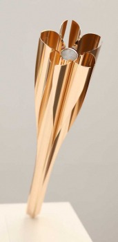 20年東京五輪・パラリンピック組織委員会は20日、五輪の聖火が日本に到着する1年前を記念して聖火リレーで使うトーチを発表した。長さ71センチ、重さ1・2キロのトーチは上から見ると桜の花の形で、色も「桜ゴールド」。素材のアルミニウムの約30%は東日本大震災被災地の仮設住宅の廃材を再利用し、復興への願いを込めた。