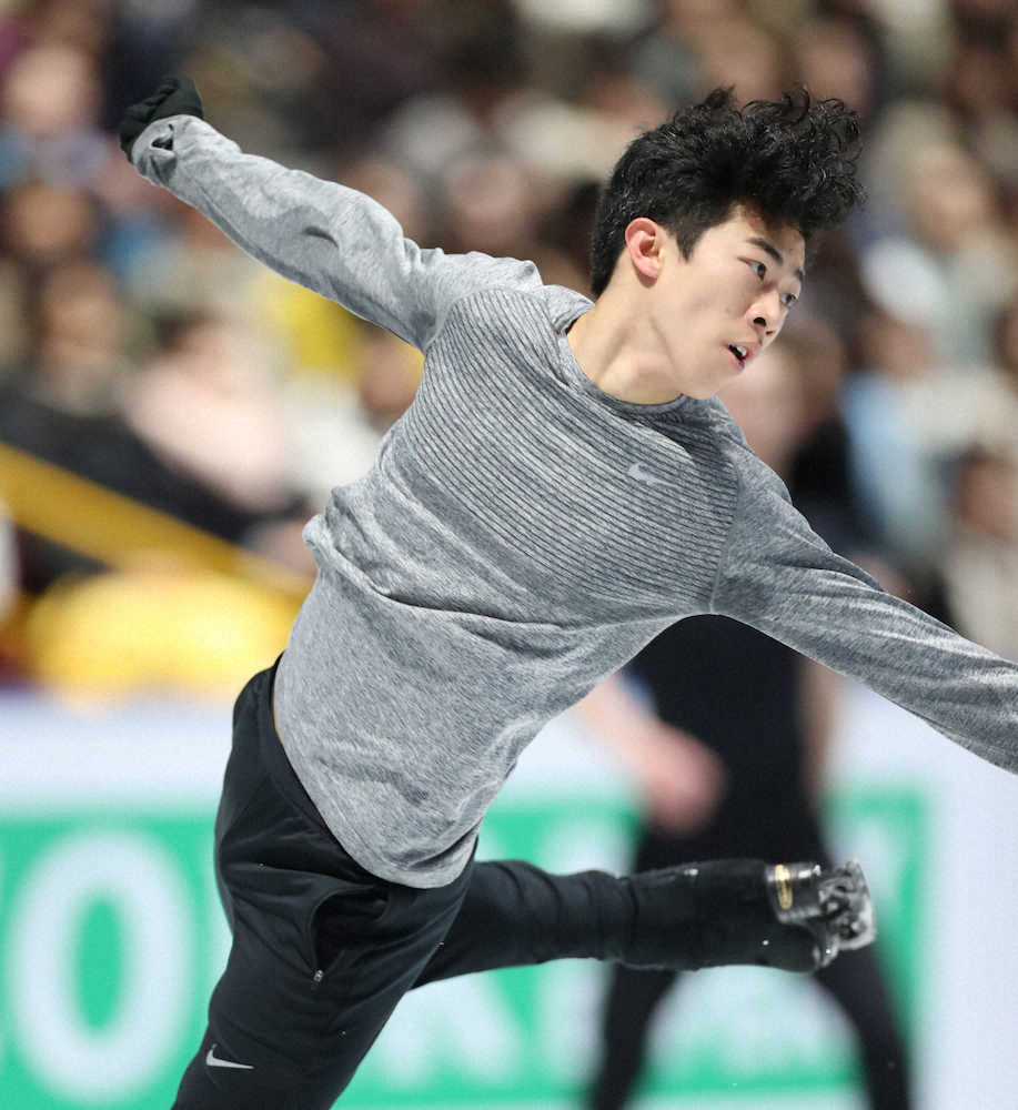 21日の男子ショートプログラム(SP)首位のネーサン・チェン(19=米国)が練習リンクでの公式練習に臨んだ。昼の練習ではスケーティングに終始したが、夕方は一変してジャンプを積極的に跳んだ。曲をかけた滑りでは4回転ルッツ、4回転トーループ、4回転トーループ―3回転トーループに成功。4回転フリップは2回転になったものの、連覇へ、躍動感を見せた。