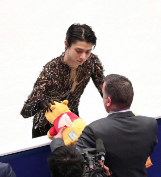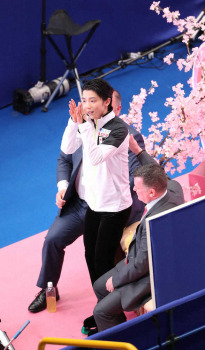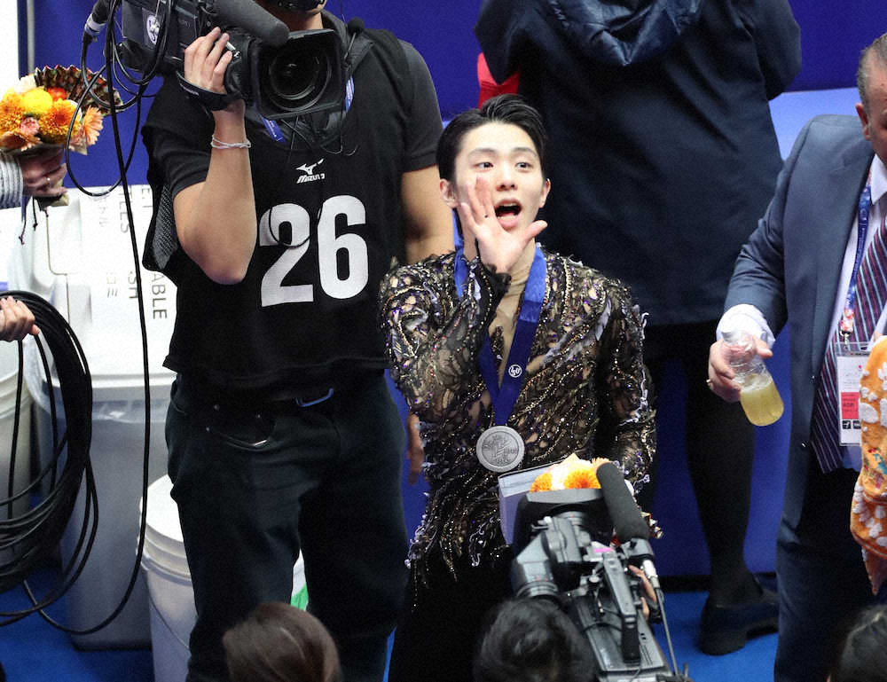 <世界フィギュア男子フリー>退場する際にも「ありがとうございました」と叫ぶ羽生(撮影・長久保 豊)