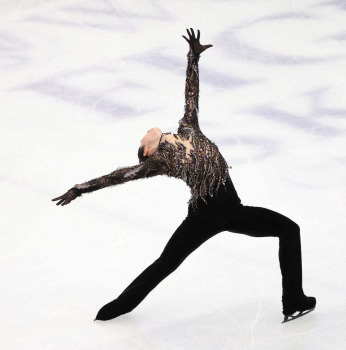<世界フィギュア男子フリー>「ありがとうございました」と場内に叫ぶ羽生(撮影・長久保 豊)