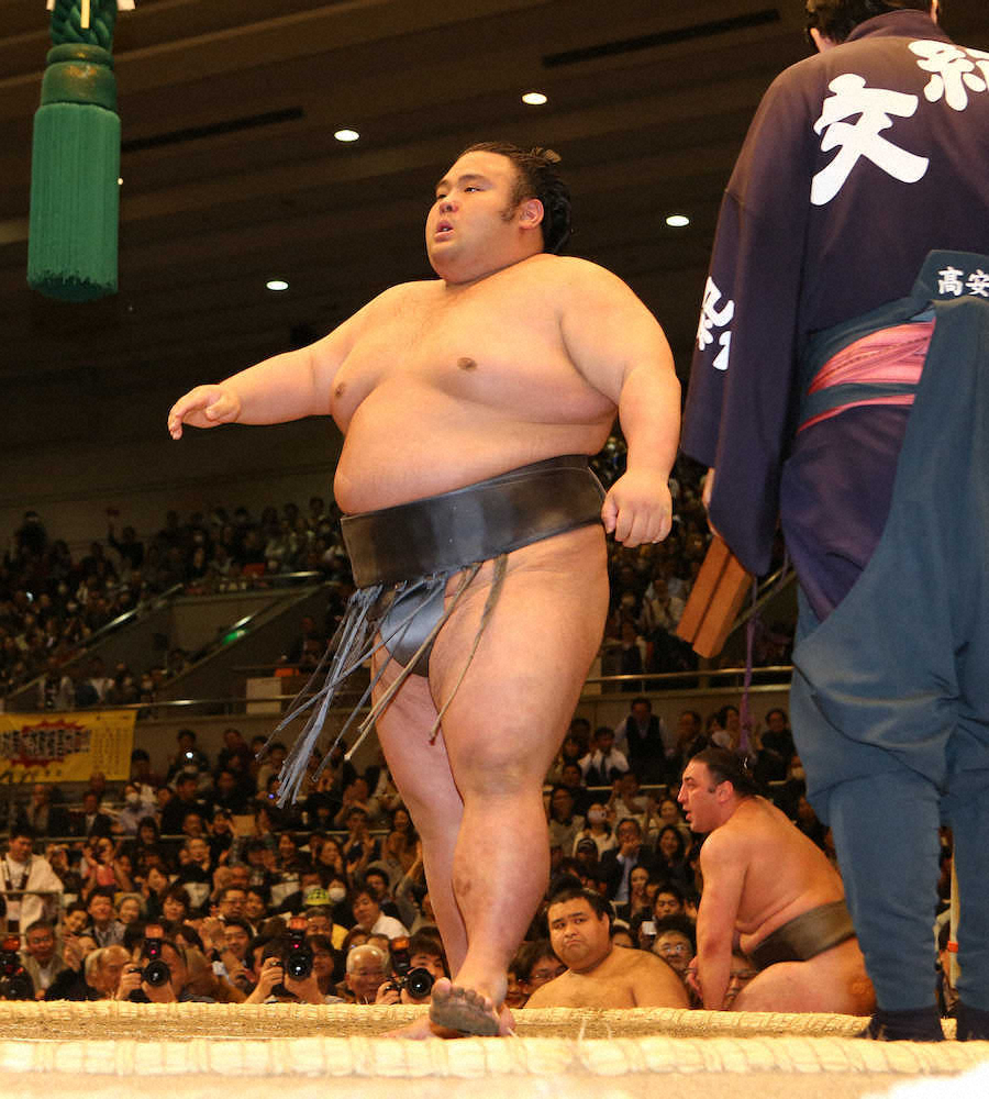 カド番大関との“入れ替え戦”。軍配が返り、手をつくまでは「相手の顔は見なかった」。極限まで集中力を高め「記憶がない」ほど無我夢中だった。ぶちかまして栃ノ心をはじきエンジン全開で前に出た。3秒1の早業だったが、「緊張してやばかった」と重圧で押しつぶされそうだった。