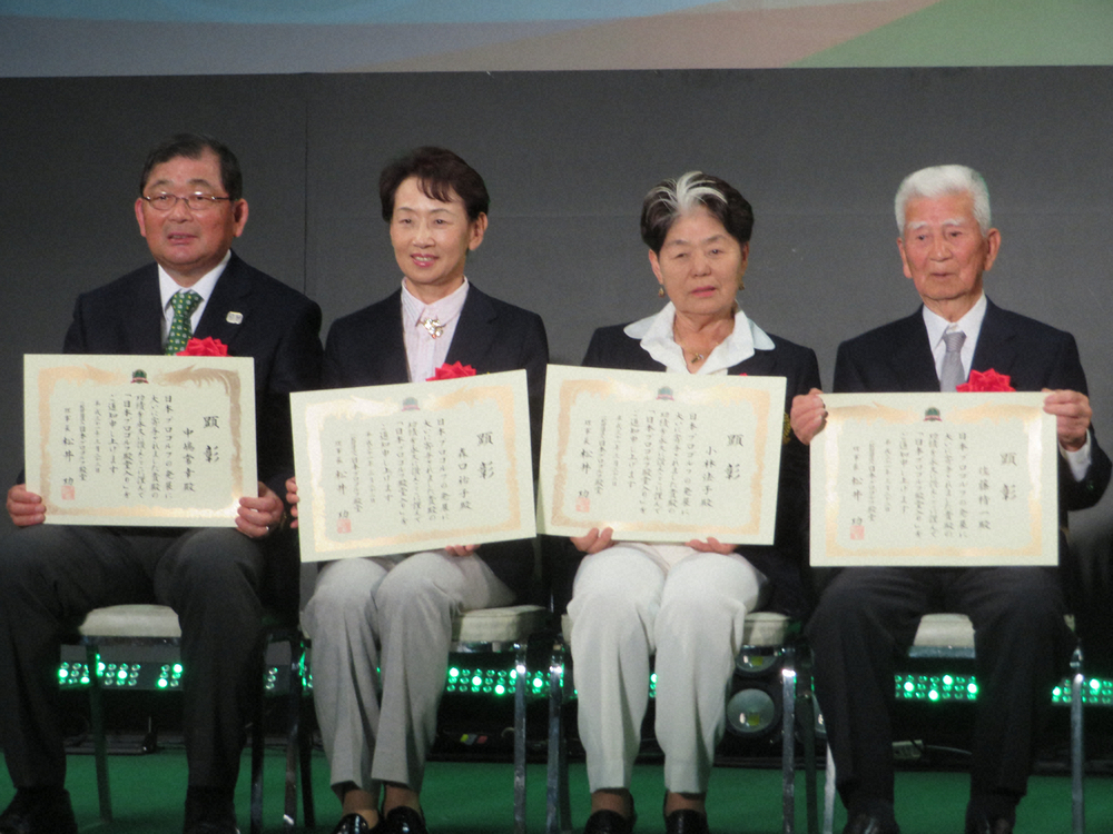 殿堂入りした中嶋常幸、森口祐子、小林法子、佐藤精一の各氏(左から)