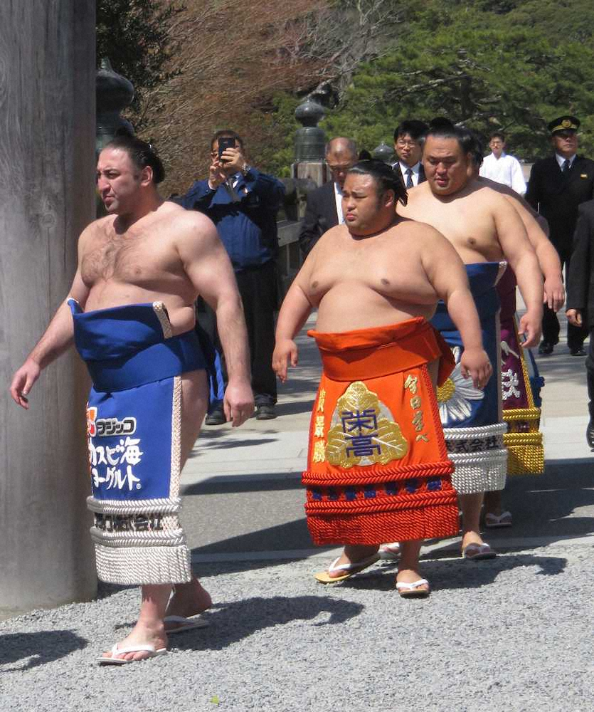大相撲の春巡業が三重県伊勢市の伊勢神宮で始まり、春場所後に大関に昇進した貴景勝(千賀ノ浦部屋)が初めて看板力士として参加。三役そろい踏みでは約7700人の観客の前で新大関として紹介され「実感が湧いた。もっと頑張っていかないといけないと思った」と責任感を口にした。