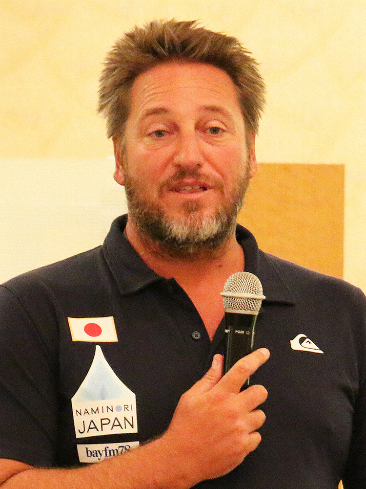 選手を前に講評するウェード・シャープ・サーフィン日本代表ヘッドコーチ