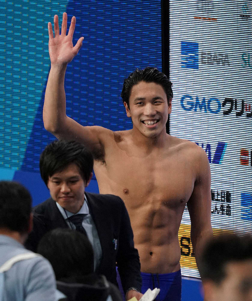 昨年10月に右肩痛を発症。11月下旬まで水中練習をできなかった。88年ソウル五輪金メダリストの鈴木大地を育てた鈴木陽二コーチ(69)に17年から師事。名伯楽の下、故障中は下半身の筋力トレに専念。お気に入りのデニムがはけなくなるほど尻回りと太腿の筋量が増加。復帰後は再発防止のため右肩に負担のかからないフォームに変更し「下半身強化でキックを打ち続けられるようになり体が浮く。楽に水をキャッチできる姿勢を保てるようになった」と効果を実感した。