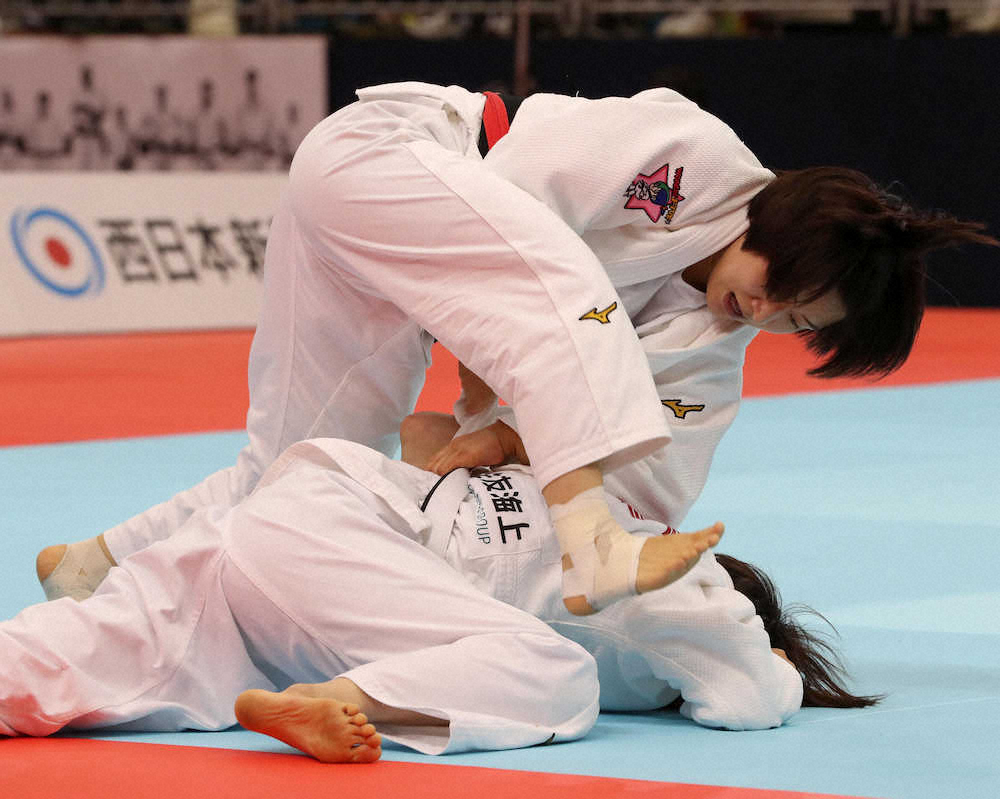 女子57キロ級は昨年の世界女王の芳田が、苦手意識のあった国内昨年の世界女王の芳田が、苦手意識のあった国内大会で3年ぶりの頂点に。文句なしで3大会連続の世界切符を手にし「日本人への苦手意識が強かった。一瞬でもホッとできた」と感涙した。