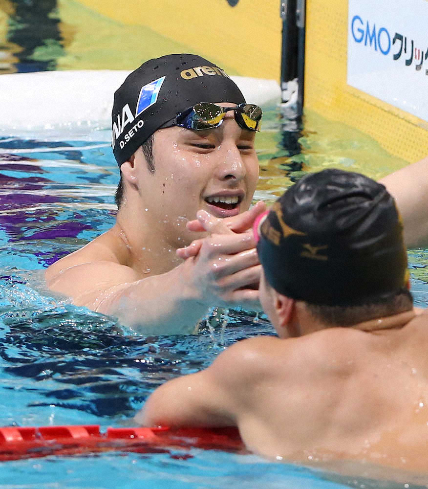 男女のエース格である萩野、池江の欠場も響き、全34種目で代表内定は10人だけ。低調なムードが大会を覆う中、瀬戸は「自分がやるしかない」と自らの存在価値を証明する好機と捉えた。両親の教えもあり、究極のプラス思考の持ち主。「もし財布をなくしたら?」の質問に「新しいのが買えるからラッキー」と答えたこともある。元飛び込み選手の優佳夫人(24)は「常に前向き。自分の子供もこういうふうに育ってほしいと思ったのも結婚した理由の一つ」と明かす。愛妻と生後4カ月から水泳教室に通う9カ月の長女がスタンドで観戦する中、日本の中心選手としてきっちり仕事を果たした。