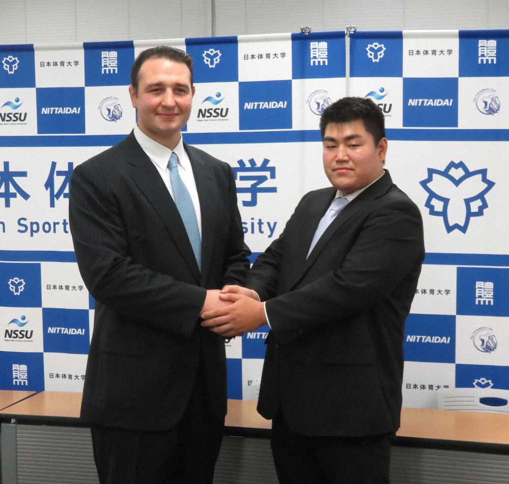 日体大出身の桜井浩太郎(22)の鳴戸部屋入りが決まり、都内の日体大で会見した。