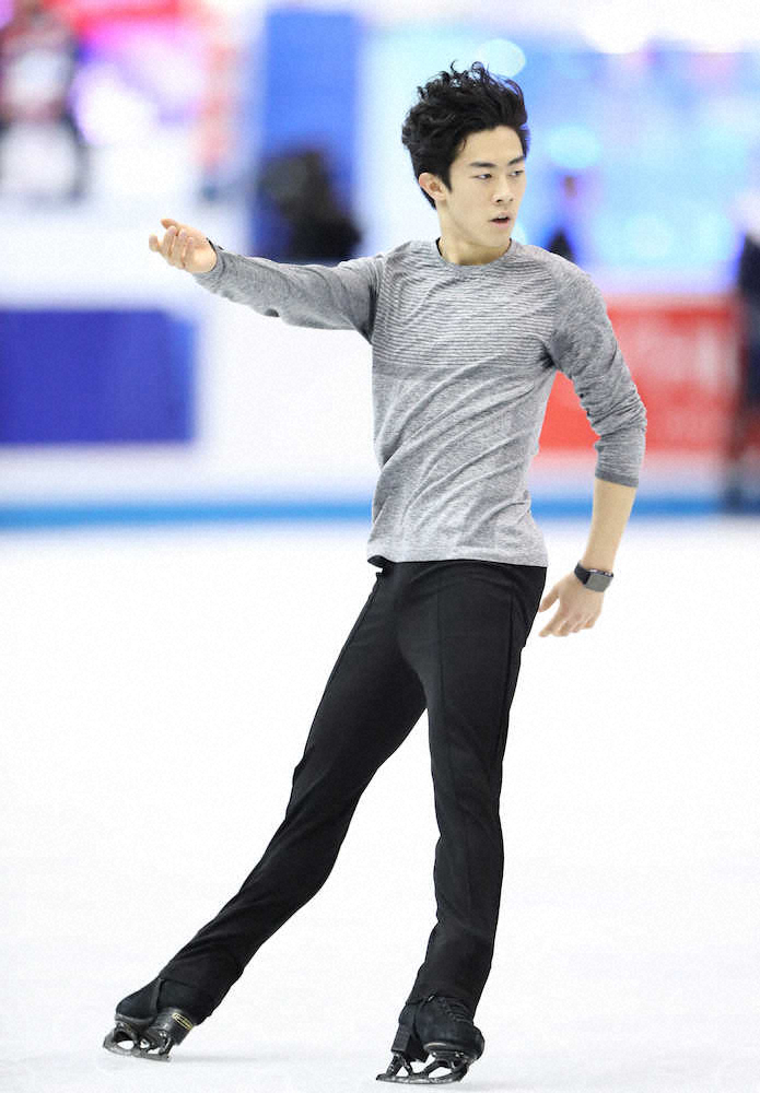 男子フリーに臨むネーサン・チェン(19=米国)が公式練習に臨んだ。曲をかけた滑りでは武器とする4回転ルッツを跳ばなかった。3本の4回転を試みて全て着氷した。