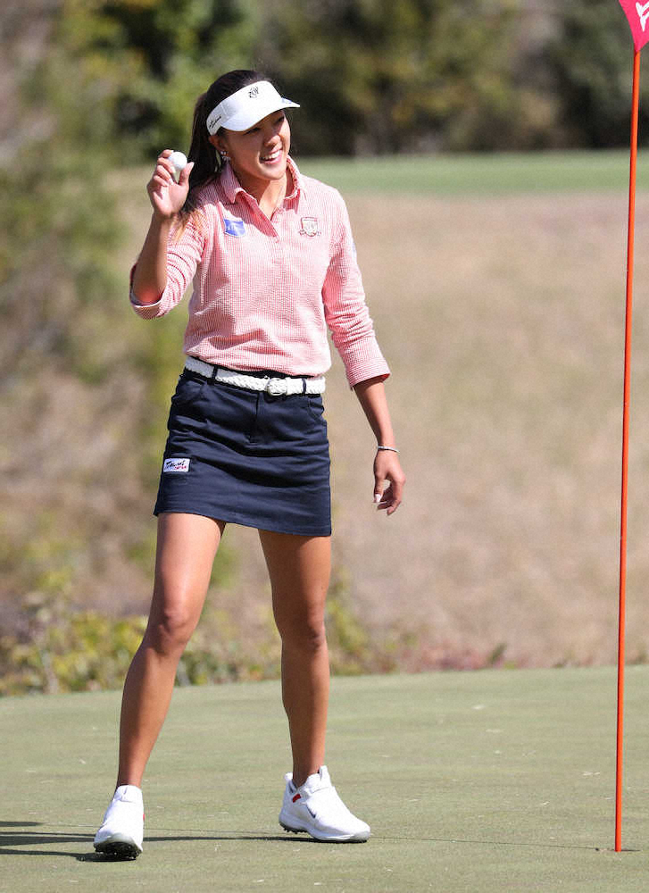 ハワイ育ちのルーキー、エイミー・コガ(23=加賀電子)が3番でホールインワンを達成するなど自己ベスト65をマークし、通算7アンダーで23位から自身初の単独首位へジャンプアップ。元世界ランク1位・申ジエ(30=韓国)と“黄金世代”吉本ひかる(20=マイナビ)が首位に1打差の2位。プロ4年目の“和製セクシー・クイーン”熊谷かほ(23=ウッドストックCC)が通算4アンダーの4位で自身初の予選突破を果たした。
