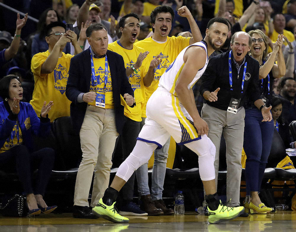 カリーのプレーオフでの3点シュートの成功は通算で386本となり、レイ・アレン(ヒートほか)が保持していた歴代最多記録(385本)を1本更新。アレンが171試合で樹立したNBA記録を91試合目で追い抜いていった。